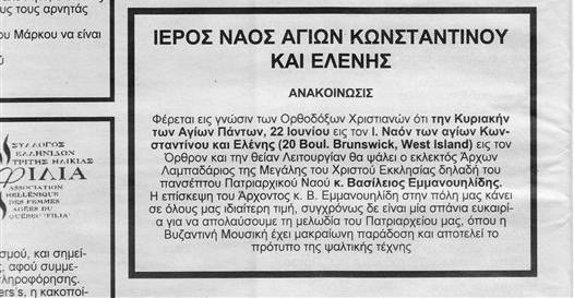 - Ι. Ν. Αγίων Κων/ντίνου & Ελένης, Μοντρεάλ (Montreal, Canada) 22 Ιουνίου 2008